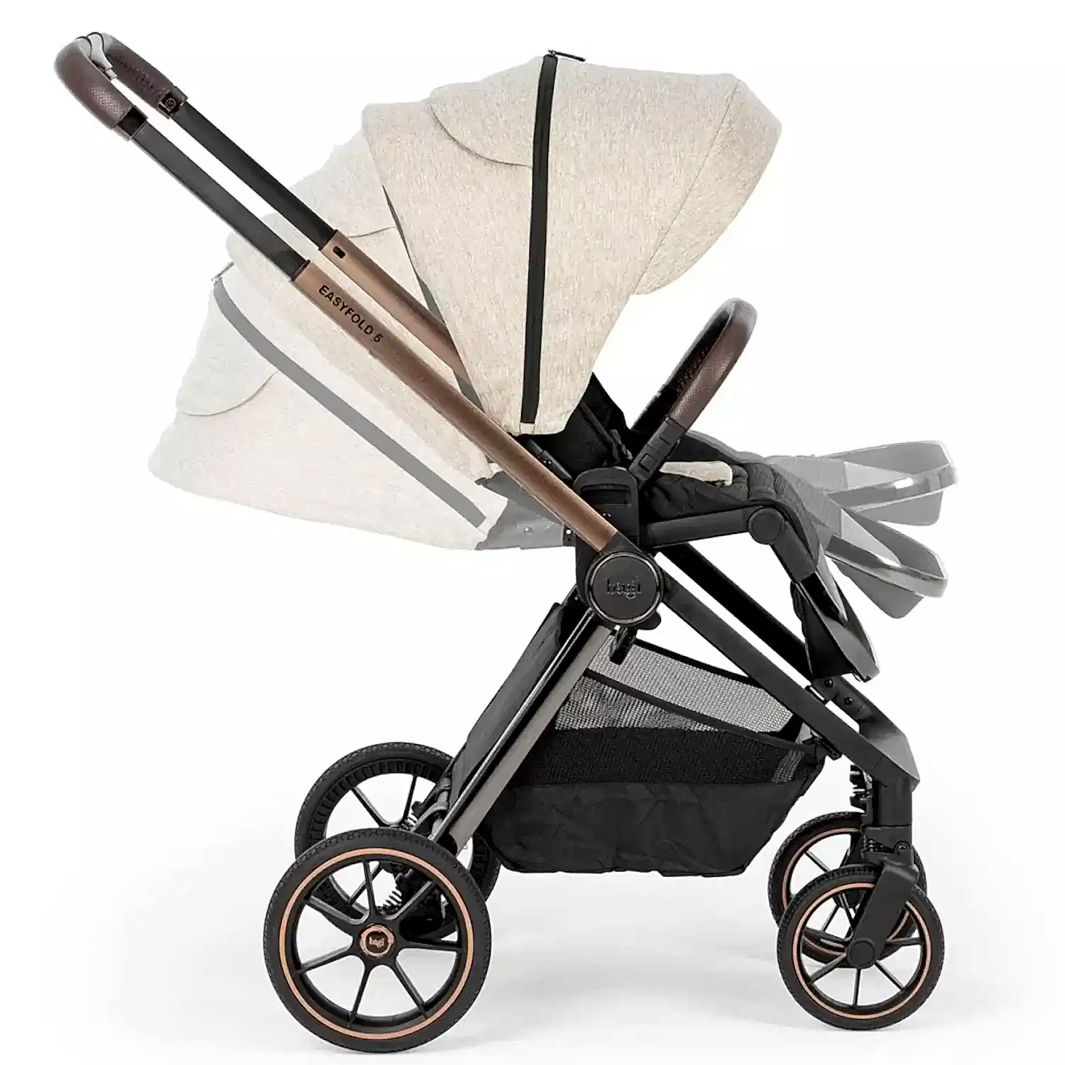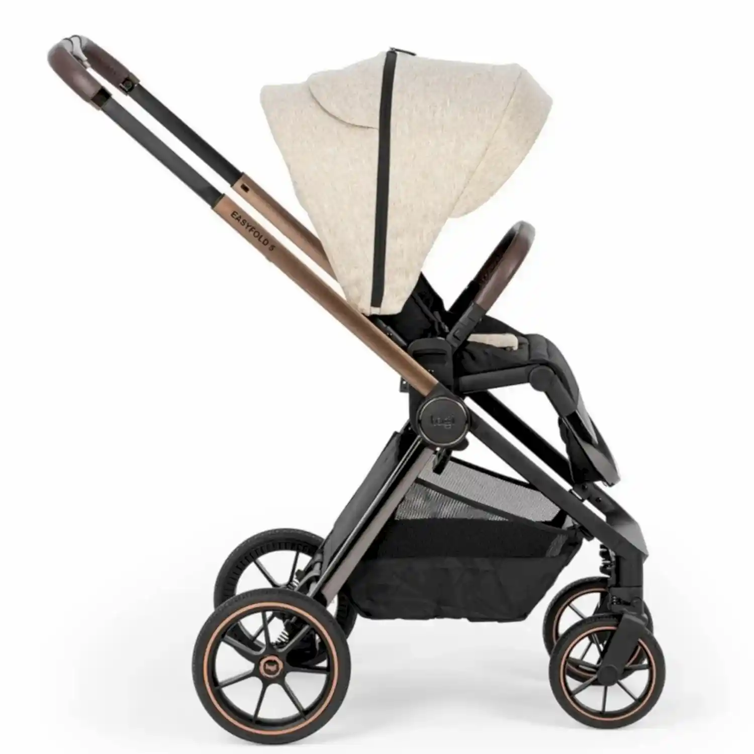 Rahat ve pratik kullanım sunan Easyfold 5, yenilenen kaliteli kumaş yapısı, deri tutma kolu ve ön bar tasarımı ile tüm dikkatleri üzerine çekiyor. Bebeğiniz eşyalarını taşımada büyük kolaylık sağlayan mıknatıslı alt sepet tasarımı depolama alanını daha kolay kullanılabilir hale getirmiştir.
