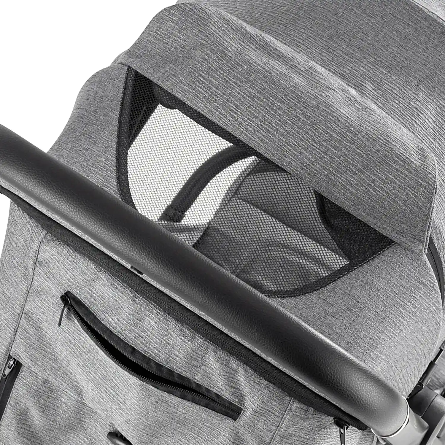 - Premium Detaylar: Deri tutma kolu ve ön bar, fermuarlı organizer ve gözetleme penceresi.