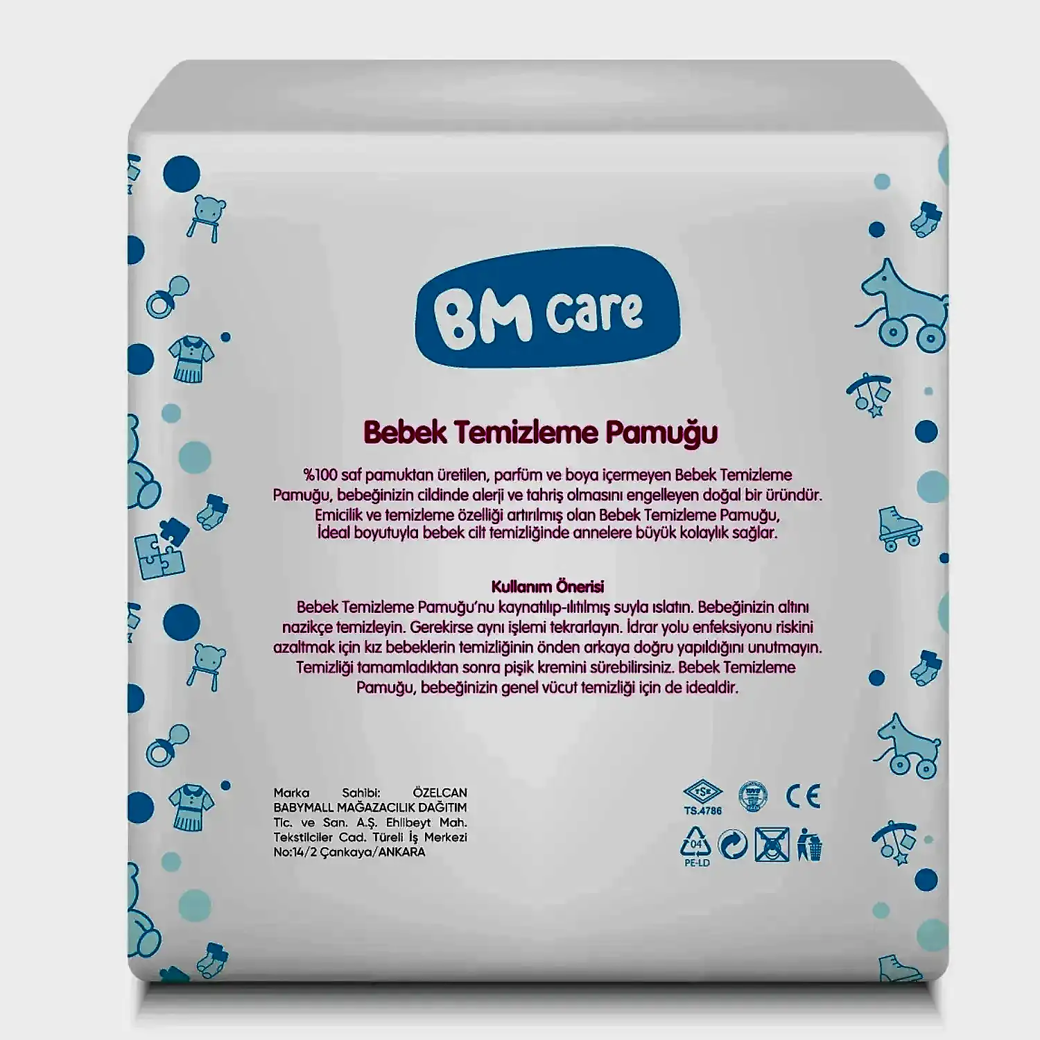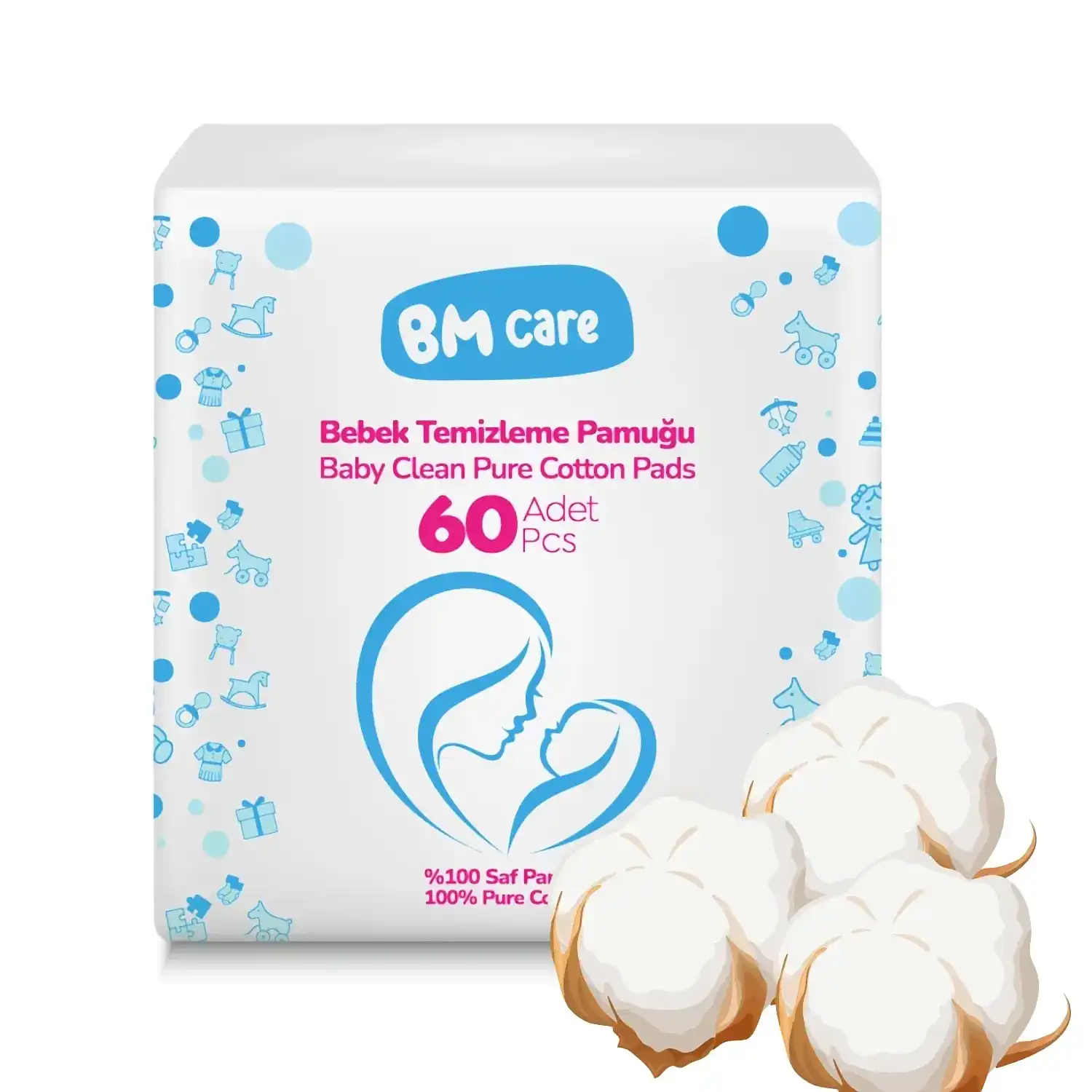 - %100 pamuktan üretilen Bm Care Temizleme Pamuğu, bebeğin cildini nazikçe temizler.